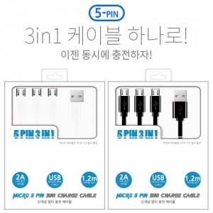 마이크로 5핀 3IN1 멀티 고속 충전 케이블 2A